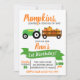 Bourcez ! Bourcez ! Bourcez ! Célébrez l'anniversaire d'automne de votre petit préféré avec cette invitation de tracteur citrouille mignon.