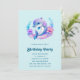 Invitation d'anniversaire avec une illustration adorable. Un dauphin bleu et violet entouré de fleurs sous-marines jolies.