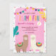 Carte d'invitation d'anniversaire Pink Chalkboard avec deux lamas.