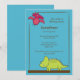 Commencez votre fête du bon pied avec notre invitation d'anniversaire de dinosaure amusante avec deux dinosaures verts et rouges sur un fond bleu. Parfait pour un premier anniversaire ou un anniversaire de tout âge. Entièrement personnalisable par vous avec vos informations. ©Kelly Medina