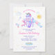 Invitez vos amis à vous rejoindre à l'aire de jeux pour la fête d'anniversaire de votre enfant avec cette adorable invitation à l'aire de jeux avec des toboggans et un cerf-volant aux nuances de rose, violet et bleu.