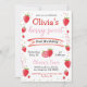 L'invitation d'anniversaire de fille de fraise comporte des baies avec des confettis colorés. Cette conception est idéale pour quelqu'un ayant une fête d'anniversaire sur le thème des Baies, Fruits, Marché de fermier ou Ferme.