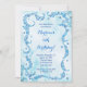 Cette invitation élégante pourtant d'amusement est idéale pour célébrer une fête d'anniversaire avec un thème d'hiver. Elle comporte des remous de flocons de neige autour de la frontière avec un arrière - plan congelé doux de glace. Idéal sensible et d'amusement de conception pour une jeune fille, un adulte de l'adolescence ou jeune. Ajoutez vos propres détails de partie.