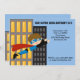 Commencez votre célébration outre de la droite avec cette invitation SUPERBE. Grand pour ce superhéros dans votre vie ! C'est un invitation adorable avec un arrière - plan bleu-clair. Il y a les bâtiments jaunes et noirs de ville avec un vol mignon superbe de superhéros devant les bâtiments. Il a les cheveux bruns et est port rouge et les couleurs bleues, vérifient les nombreux autres produits et conceptions dans cette ligne. illustrations de ©JW