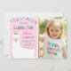 Invitation d'anniversaire rose avec la llama mignonne et photo personnalisée