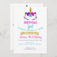 Invitation à la fête d'anniversaire de la licorne. Design mignon en or parties scintillant faux avec accent floral. Violet, turquoise, or rose et blanc. Parfait pour une magique fête du 1er anniversaire. Faites-le vous-même en ajoutant votre texte. Pour accéder aux outils de montage avancés, accédez à Personnaliser, faites défiler et appuyez sur le lien "cliquer pour customiser plus loin".