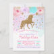 Cette invitation est composée d'une licorne de parties scintillant d'or avec de la poussière de licorne, des fleurs fantaisistes et des étoiles magiques et est parfaite pour une fête d'anniversaire, un baby shower, un récital de danse ou toute autre célébration où un peu de magie est nécessaire! Customisez pour n'importe quelle occasion !