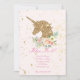 INVITATION D'ANNIVERSAIRE DE L'UNICORNE D'OR FLORAL MAGIQUE AUX COULEURS PASTEL.