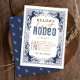 Lancez la grande journée de votre petit cow-boy avec cette invitation d’anniversaire "First Rodeo" bleu marine. Avec son style occidental classique et ses tons bleus audacieux, cet invitation personnalisé est parfait pour donner le ton d'une célébration rustique du 1er anniversaire, sur le thème de la campagne. Customisez avec les détails de votre fête pour rassembler vos amis et votre famille dans le style!