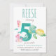 Célébrez un cinquième anniversaire avec notre cinquième invitation d'anniversaire de la tortue de mer! Plongez dans une aventure sous-marine avec ce design charmant avec une tortue de mer ludique qui glisse à travers l'océan. Personnalisez avec vos détails de fête et faites un splash avec cette délicieuse invitation!