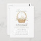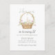 Carte d'invitation d'anniversaire avec un lapin à l'aquarelle dans un panier avec des tulipes et des œufs.