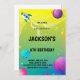 Lancez la célébration de votre enfant en orbite avec cette invitation vibrante d’anniversaire à l’espace extérieur jaune et vert! Doté d'un navire-fusée, de planètes et d'étoiles sur un arrière - plan cosmique audacieux, ce design modifiable est parfait pour les enfants qui aiment les aventures spatiales. Personnalisez facilement le nom, l’âge et les détails de la fête à l’aide des outils de conception de Zazzle. Idéal pour les fêtes astronautes, de fusées ou de galaxie.