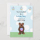 Un mignon petit ours en peluche tenant un cupcake. Des gâteaux tapissent le sommet avec un arrière - plan amusant.
