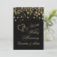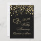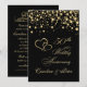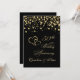 Invitation d'anniversaire de mariage 50 ans avec cœurs entrelacés dorés et confettis ronds sur fond noir