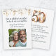 Célébrez 50 années fabuleuses avec le mélange parfait d'élégance et de touche personnelle grâce à cette invitation personnalisée pour un 50e anniversaire de mariage espagnol avec photo ! Cette invitation magnifiquement conçue présente un étonnant numéro 50 au dos de la carte avec tous les détails de la fête. Au centre, elle met en valeur une photo préférée des personnes honorées, garantissant que chaque invitation se sent unique et personnelle. Disponible à la fois en version imprimée et en format téléchargeable, cette invitation est le choix idéal pour ceux qui apprécient à la fois la tradition et la commodité.