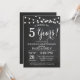 Invitation d'anniversaire de mariage de 5 ans. Fond de tableau noir. Guirlandes lumineuses. Noir et blanc. 1er, 2e, 3e, 4e, 5e, 10e, 15e, 20e, 25e, 30e, 35e, 40e, 45e, 50e, 55e, 60e, 65e, 70e, 75e, 80e, Toutes les années. Anniversaire adulte. Fête d'anniversaire pour homme ou femme. Pour une personnalisation supplémentaire, veuillez cliquer sur le bouton "Personnaliser" et utiliser notre outil de conception pour modifier ce modèle.