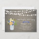 Célébrez votre jour spécial avec cette invitation d'anniversaire de mariage élégante. Ce design présente un beau bouquet de fleurs avec un pot Mason et des guirlandes lumineuses sur un fond en bois rustique.