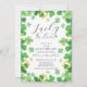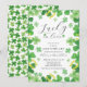 Invitation d'anniversaire de mariage moderne et amusante sur le thème irlandais du trèfle. Retournez notre invitation de célébration d'anniversaire chanceux en amour pour découvrir un verso coordonné représentant un trèfle à quatre feuilles vert.