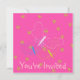 Des papillons et des fleurs décorent cette invitation d'anniversaire pour l'anniversaire d'une fille ou autre événement. Le arrière - plan rose n'est pas personnalisable, mais tout le texte peut être modifié.