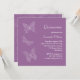 Des papillons géants mettent l'accent sur cette invitation de Quinceanera à l'ombre ludique du violet. Il est indiqué sur le document de base; cependant, je recommande le poids et la texture du papier de lin.
