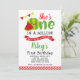 Customisez cette invitation mignonne d'anniversaire de pastèque avec votre propres nom, âge, détails de partie et rsvp. Tout le texte est editable.