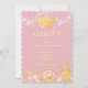 Faîtes de l'anniversaire de votre petite fille une magie avec cette adorable invitation à thème princesse rose ! Doté d'une couronne d'or, d'étoiles étincelantes, d'une licorne, d'un château et d'une calèche royale, cet invitation est parfait pour célébrer la journée spéciale d'une princesse. Idéal pour un 5ème anniversaire, mais entièrement personnalisable pour tout âge. Personnalisez facilement tout le texte avec les détails de votre partie — date, heure, emplacement et informations RSVP.