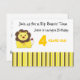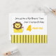 Cet adorable lion accentue cette mignonne invitation d'anniversaire. Des rayures jaunes et brunes se sont accentuées à travers le fond. Parfait pour votre fête d'anniversaire de fils ou de filles.
