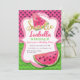 Célébrez un anniversaire doux avec cette invitation adorable d'aquarelle de pastèque ! Comporte les tranches roses colorées de pastèque accentuées avec un cadre rose-clair. Un point de polka rose et pourpre délicieux et un motif vert de chevron composent un arrière - plan mignon. Perfectionnez pour un anniversaire d'été !