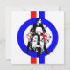 Invitations stylées de haute qualité avec un design montrant un scooter des années 60 rétro sur de mod cible et rayures sur le dos . OEuvre originale de www.auslandesign.com
