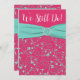Cette invitation d'anniversaire de mariage de 25 ans "We Still Do!" avec un aspect de faux embossé rose et des tourbillons de vert de mer ou de menthe verte comporte des zones de texte personnalisables. Veuillez noter que le ruban et les bijoux sont des images imprimées et ne sont pas réels. Si vous avez besoin d'autres articles assortis ou si vous souhaitez cette invitation dans une combinaison de couleurs différente, veuillez envoyer votre demande à niteowlstudio@gmail.com