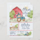 Célébrez la grande journée de votre petit avec cette adorable invitation d'anniversaire Farmyard Friends ! Avec des animaux en aquarelle peints à la main conduisant un tracteur devant une grange rouge vif, ce design fantaisiste est parfait pour un premier anniversaire ou l'anniversaire d'un jeune enfant. Avec des animaux de ferme joyeux portant des chapeaux de fête, des arbres ludiques et un arrière-plan ensoleillé à la campagne, cette invitation plante le décor pour une journée joyeuse et mémorable. Personnalisez avec le nom de votre événement, la date, l'heure, le lieu et les détails de RSVP. Idéal pour un thème de barnyard, de zoo ou de fête en plein air !
