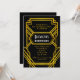 Cette invitation élégante est idéale pour célébrer une fête d'anniversaire avec un aileron, un Hollywood Regency ou un thème des années 1920. Elle comporte une décoration avec des lignes et des formes géométriques comme rappel du style de cette décennie. L'or, palette de couleurs noire et blanche accomplit le rétro regard.