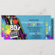 Quatre-vingts thème avec lunettes de soleil, bande mixte, et design géométrique coloré audacieux avec la carte d'invitation à l'anniversaire éclaboussante de peinture.