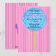 Commencez votre fête avec cette adorable invitation à l'anniversaire des filles. Il s'agit d'une grande pop bleu vif sur un arrière - plan rayé rose foncé et clair. Découvrez les nombreuses autres couleurs et designs de cette ligne. Aussi les nombreux autres produits tels que les chemises, les cartes de remerciements, l'affranchissement, et beaucoup d'autres. © Illustrations JW