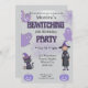 Une amusante invitation à la fête d'anniversaire sur le thème de l'Halloween avec une sorcière amicale, chat noir, fantômes et citrouilles. Parfait pour la célébration éffrayante d’un enfant. Texte entièrement modifiable pour personnaliser le nom, l'âge, la date, l'heure et les détails du parti.