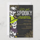Invitation vos invités à une fête effroyablement amusante avec cette invitation d'anniversaire "Let's Get Éffrayant" Halloween! Doté d'une pile éffrayante de crânes de sucre en casquettes sorciers, d'accents vert néon, de toiles d'araignée et de bonbons sur un arrière - plan noir texturé, ce design audacieux et ludique est parfait pour les fêtes d'anniversaire d'Halloween pour enfants ou les événements costumés. Personnalisez-vous avec le nom de votre enfant et les détails de votre fête pour un merveilleux moment !