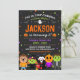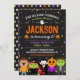 Profitez de cette invitation colorée d'anniversaire d'Halloween ! C'est la meilleure façon pour les invitations invités à la fête d'anniversaire costumée de votre enfant. Cet invitation d'Halloween est conçu avec des enfants mignons en costume, fantômes, citrouilles, et une tête de crâne sur un arrière - plan de tableau noir.