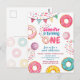 Cette invitation d'anniversaire douce présente mes donuts dessinés à la main dans des couleurs vives avec des confettis.