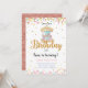 Carousel Anniversaire Invitation avec parties scintillant d'or, confettis colorés, et un beau carrousel pour rendre votre anniversaire plus spécial.