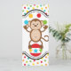 Un singe de carnaval jonglant des boules sur un arrière - plan de pois de polka et des zones que vous pouvez facilement customiser avec les informations de fête de votre enfant sur le thème du carnaval invitations d'anniversaire il est sûr d'aimer!
