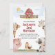 Invitation des amis de la ferme! Dotée d'une charmante grange décorée d'adorables animaux de ferme, cette invitation ouvre la voie à une fête remplie de rire et de joie. De plus, tout le texte est modifiable, de sorte que vous pouvez ajouter votre touche personnelle et le rendre spécial. LANE01