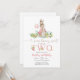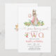 Célébrez le jour spécial de vos petits avec cette charmante invitation d'anniversaire au lapin à l'aquarelle. Avec un lapin mignon dans une veste rose et une couronne de fleurs tenant un ballon, entouré de verdure et de fleurs délicates, ce design est parfait pour une fête d'enfants fantaisiste. Les couleurs pastel douces et les détails ludiques en font un élément idéal pour une célébration d'anniversaire pour fille, créant un souvenir mémorable pour la famille et les amis. Personnalisez facilement avec les détails de votre événement pour le rendre vraiment unique.