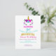 Invitation d'anniversaire Licorne. Joli design en doré faux brillant avec accent floral. Violet, sarcelle, rose doré et blanc. Parfait pour une célébration magique de 1er anniversaire. Personnalisez-le en ajoutant votre texte. Pour accéder aux outils d'édition avancés, veuillez aller dans "Personnaliser", faites défiler vers le bas et cliquez sur le lien "cliquez pour personnaliser davantage".