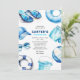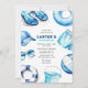 Plongez dans le plaisir avec cette invitation d'anniversaire garçon bleu frais qui est parfaite pour toute célébration estivale ! Personnalisez le modèle et laissez l'ambiance de votre fête se répandre avec cette merveille aquarelle, mettant en vedette des accents de natation et de plage dans de superbes teintes turquoise et bleue. Parfait pour les fêtes au bord de la piscine, les soirées plage ou les barbecues dans le jardin !