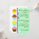 Des invitations colorées à des fêtes d'anniversaire, parfaites pour toute jeune fille. Décorées de dessins humoristiques miettes de cupcakes en cours de course, sur le côté gauche, d'un vert avec du texte en pois blanc, et d'un ruban mauve courant entre eux. Customisez le texte en style, couleurs et taille à vos goûts. Super invitation d'anniversaire. Correspondance des timbres disponibles.