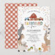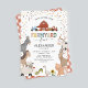 Cartes d'invitation d'anniversaire pour enfants de la ferme mignonnes avec un fond blanc simple, des animaux de ferme adorables comprenant une vache, une chèvre, un cochon, un mouton, un âne, un cheval, un lapin, un canard et un coq, et un modèle de célébration d'anniversaire pour enfants facile à personnaliser.