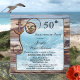 Une invitation de fête d'anniversaire sur le thème nautique avec des vagues océaniques encadrées par du bois vieilli rustique, une ancre et un nœud en forme de cœur.