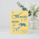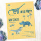 C'est l'heure d'une fête d'anniversaire sauvage ! Un groupe amusant de dinosaures adorables sur fond jaune, prêt à être personnalisé avec le nom de votre enfant, son âge et les détails de la fête. Parfait pour les enfants de tout âge, garçons ou filles. Le dos est vierge pour votre propre message. Œuvre originale de Nic Squirrell.