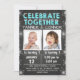 Ce joli tableau noir est une invitation à l'anniversaire d'un enfant jumeau ou d'une fête d'anniversaire de garçon. Ce dessin présente des flocons de neige en faux argent sur une image arrière - plan de tableau noir.