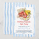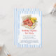 Rendez leur anniversaire inoubliable avec un festif repas de fruits de mer ! Cette invitation d'anniversaire combine des rayures rustiques et des illustrations de fruits de mer à l'aquarelle pour une ambiance côtière amusante. Personnalisez avec le nom et l'âge du héros de la fête. Idéal pour les anniversaires, les repas de famille ou les célébrations au bord de la mer.